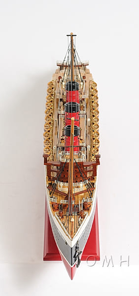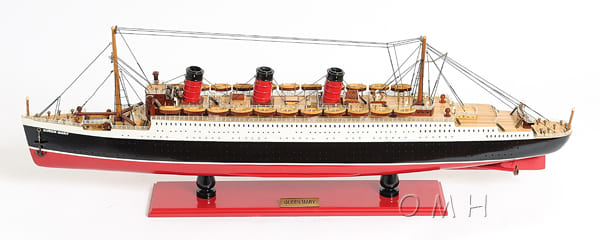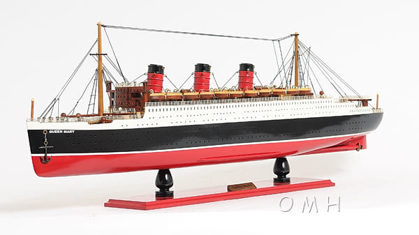 這個精緻的Queen Mary瑪莉皇后號豪華郵輪手工模型是用西部紅雪松、紅木和桃花心木等高級木材按比例100%手工使用類似實際造船 Plank-on-Frame 的方法建造完成。每個模型需要上百小時才能完成,並且必須在離開車間之前經過嚴格的質量控制流程。模型以紅色、黑色和白色為主要顏色進行塗裝,以展現原來的色彩。它包含數百個精緻的細節,主甲板兩側設有數十個逼真的木製救生艇。所有梯子、立柱和欄杆均由金屬製成,起重機、救生艇和艙口都經過精心的木工手工製作。它牢固地固定在堅固的木底座上,配有黃銅名牌。它將是家居裝飾者、船舶愛好者或熱情收藏家的完美禮物。