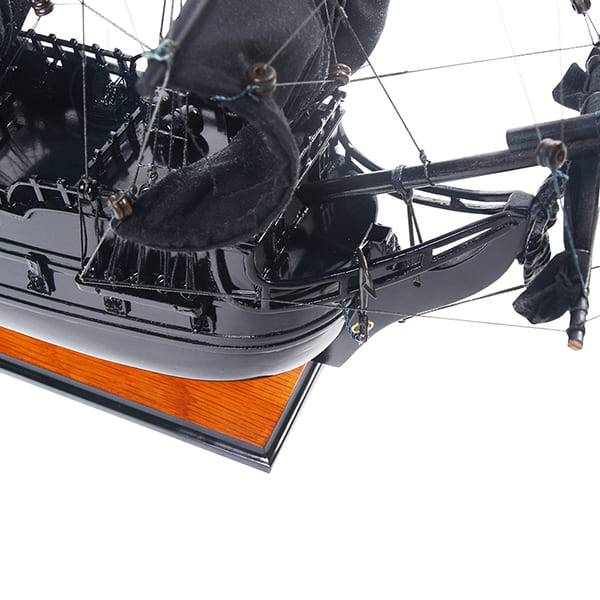 這艘鬼盜船完全塗裝上深黑色漆。它主要特點是plank-on-frame工法、三層甲板和一整排兇猛的金屬大砲,位於船的雙側。船首斜桅和三個大桅杆使用複雜精細的索具牢固連接,繩索手工打結和固定。每個橫桅都有一個由細亞麻布製成的手工縫製展開的帆。