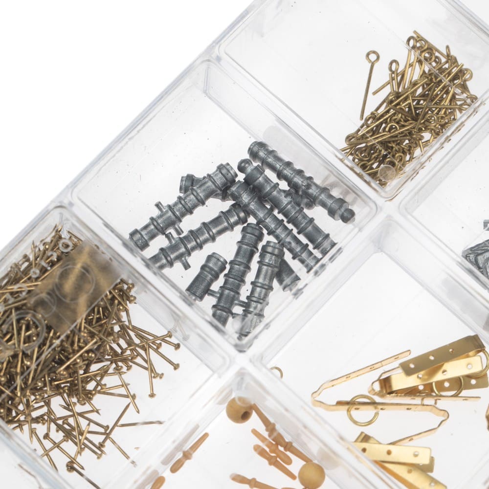 * 基本工具(Basic tools) – 含切割鉗(Cutting Pliers)、手鑽+鑽頭(Hand Drill + Bit)、切割器(Cutter)、打磨器(Sander)、銼刀(Coarse Lime)、鑷子(Tweezers)和錘子(Hammer)