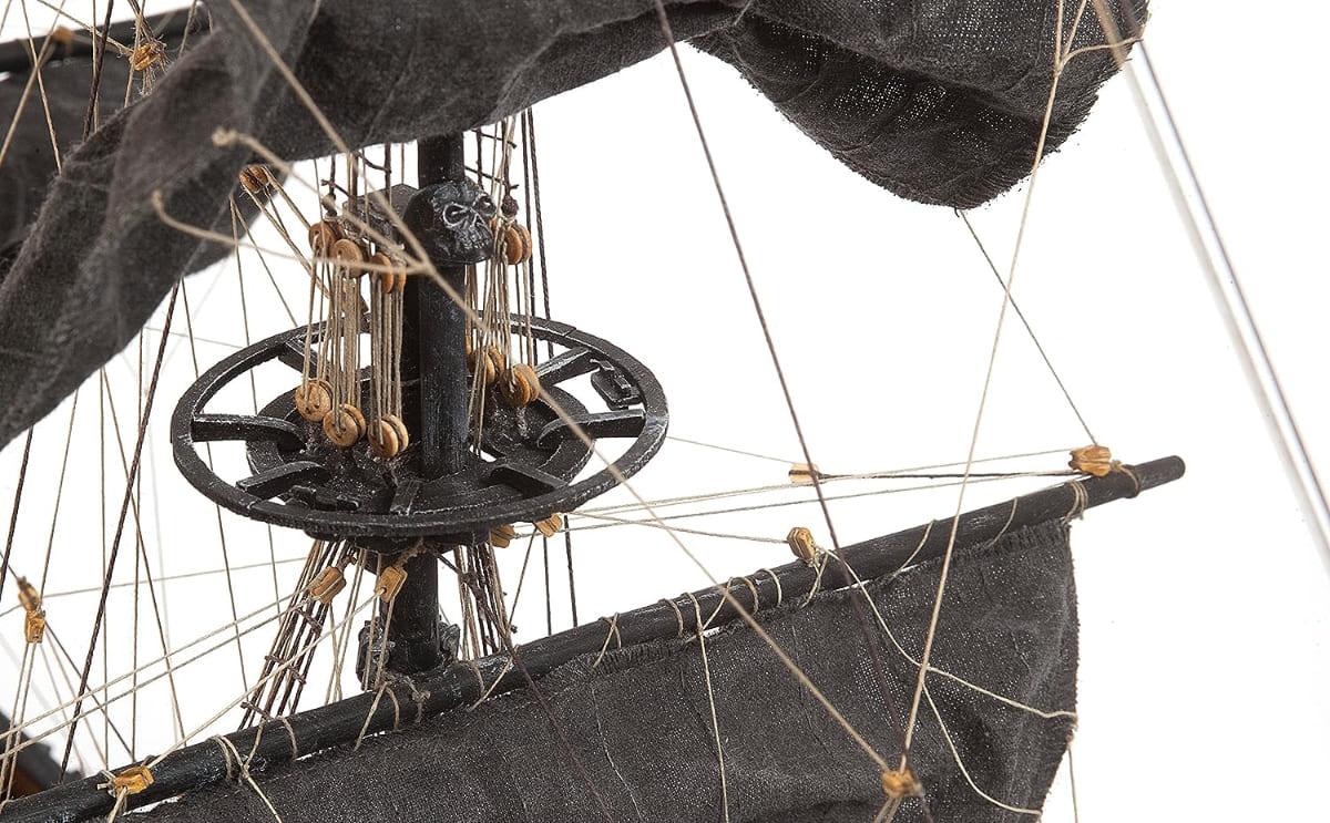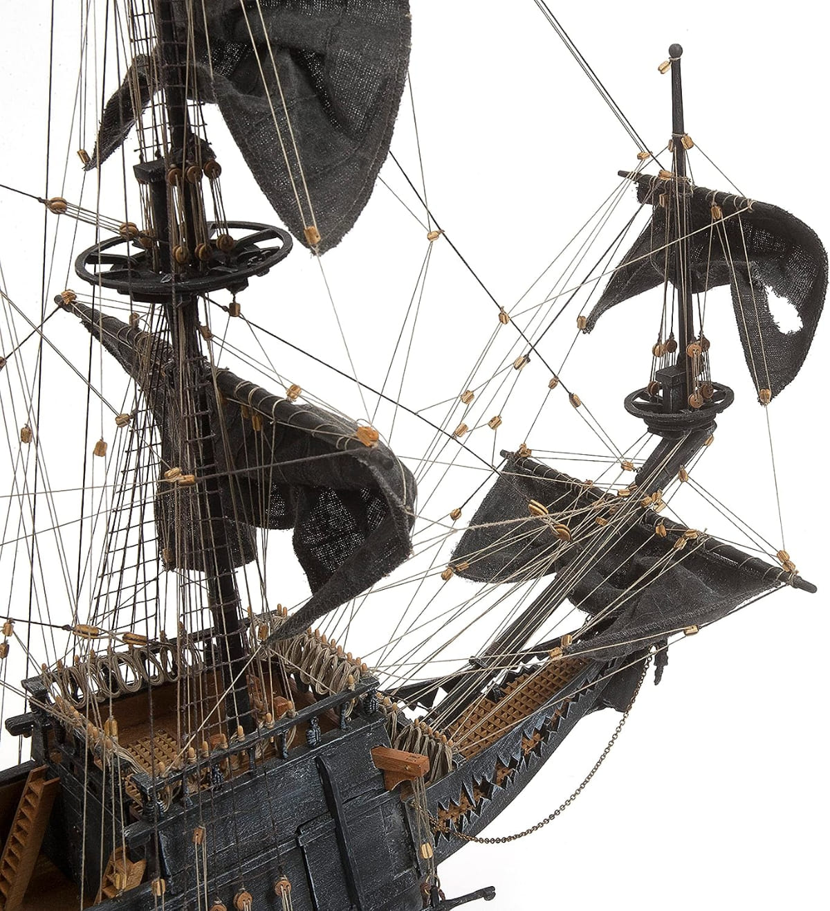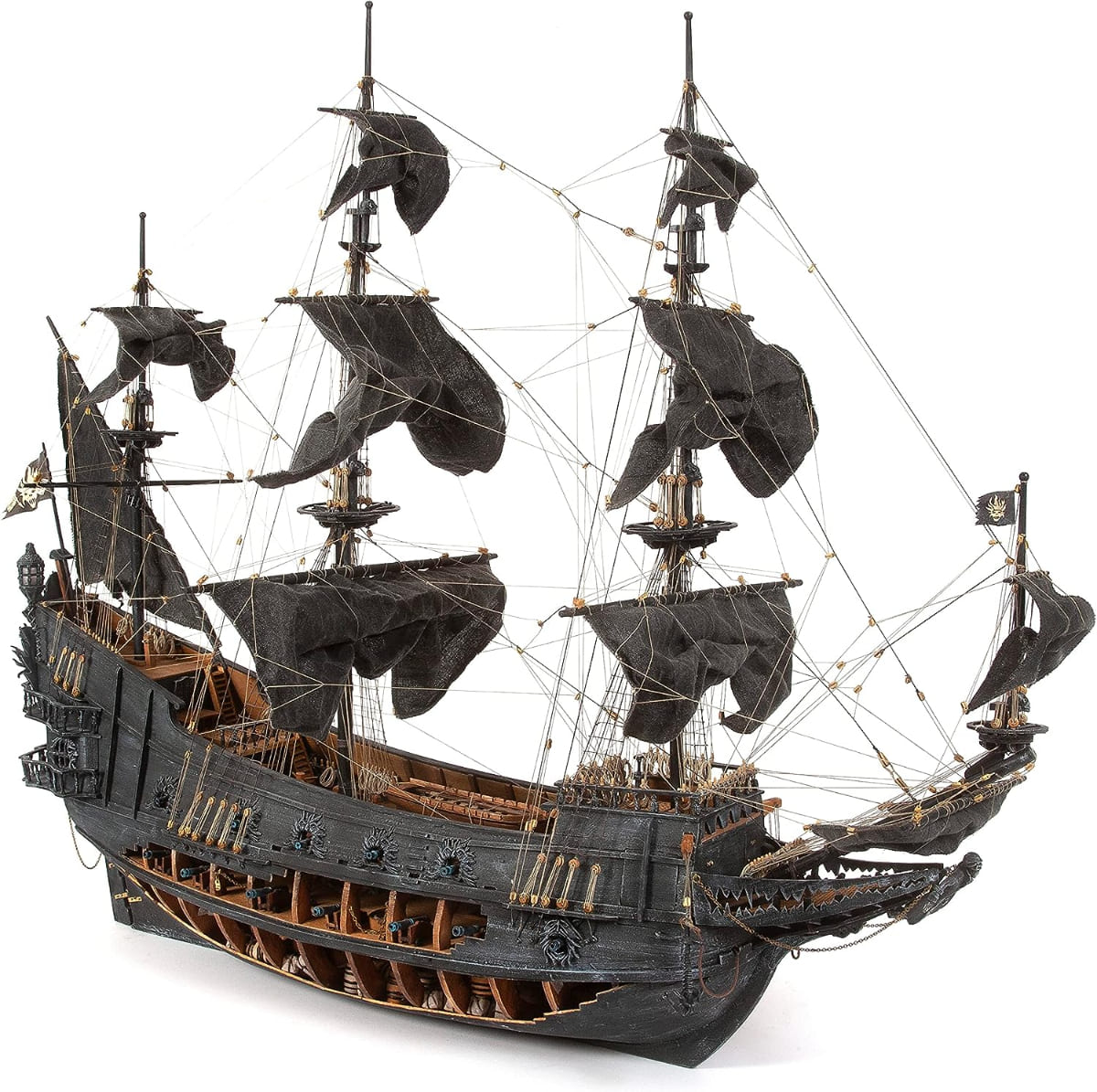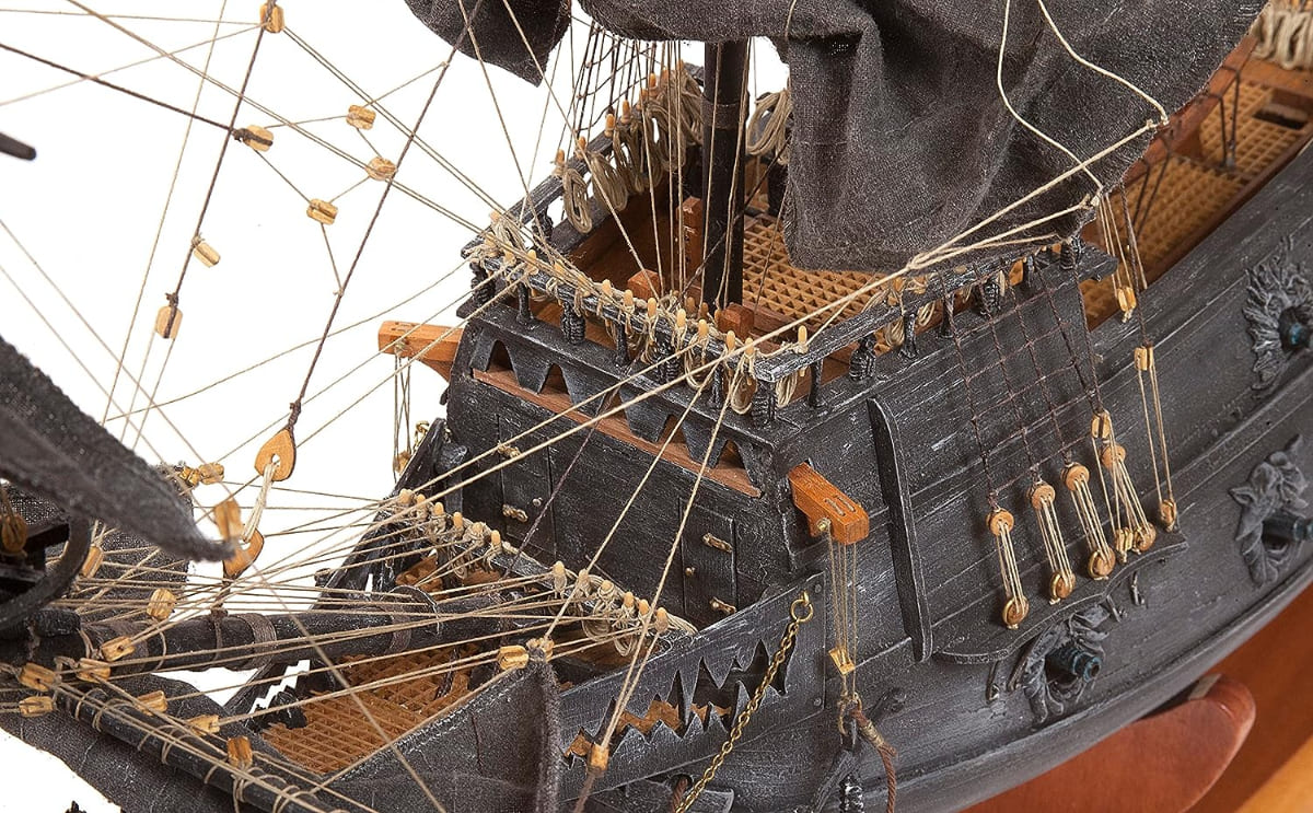 • 船身內有許多細節,包括完整的大砲、彈藥、吊床、商品、酒桶等