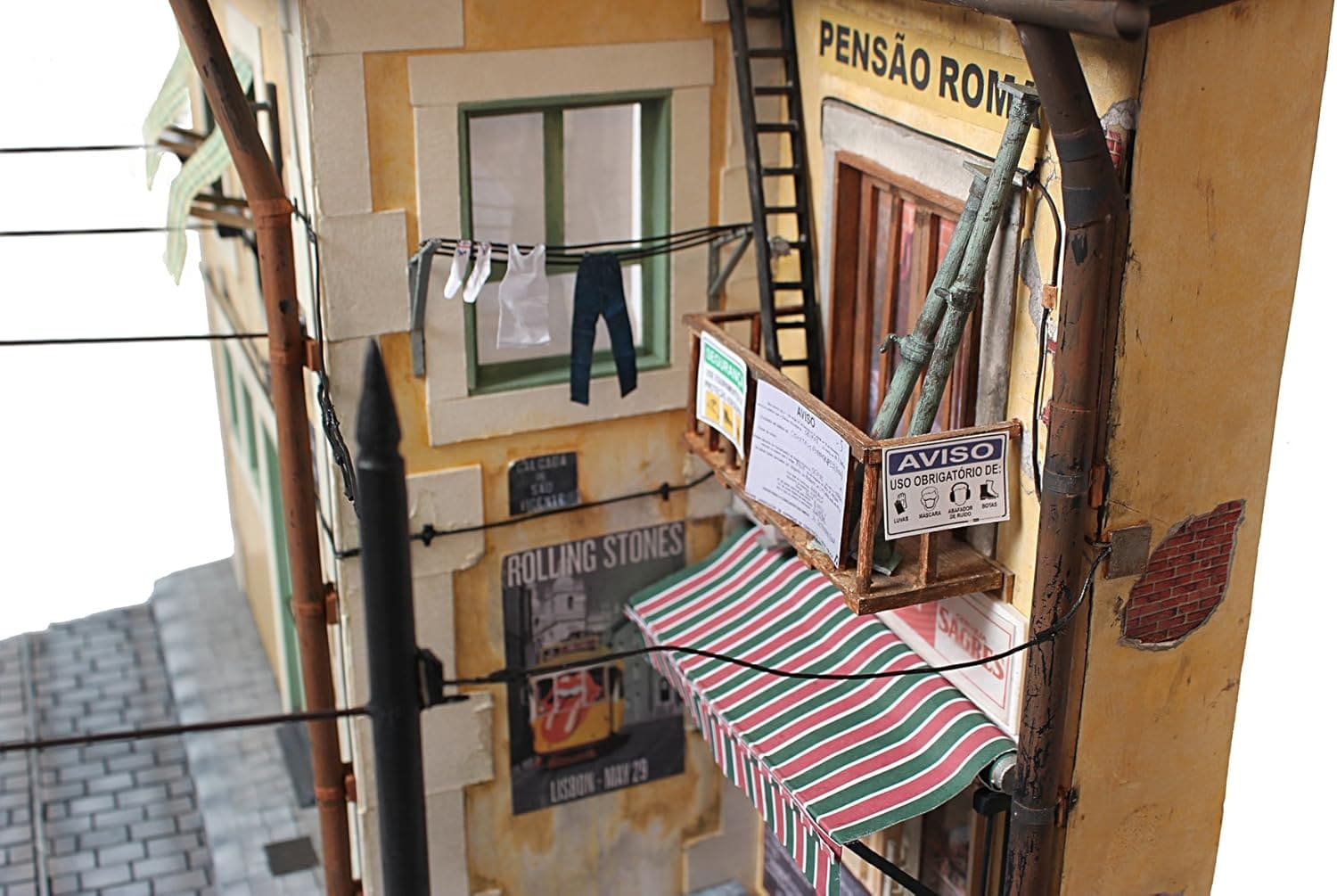 套組內含:完整的場景建造材料與零件,讓您輕鬆組裝屬於自己的迷你里斯本街景。