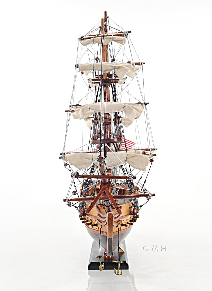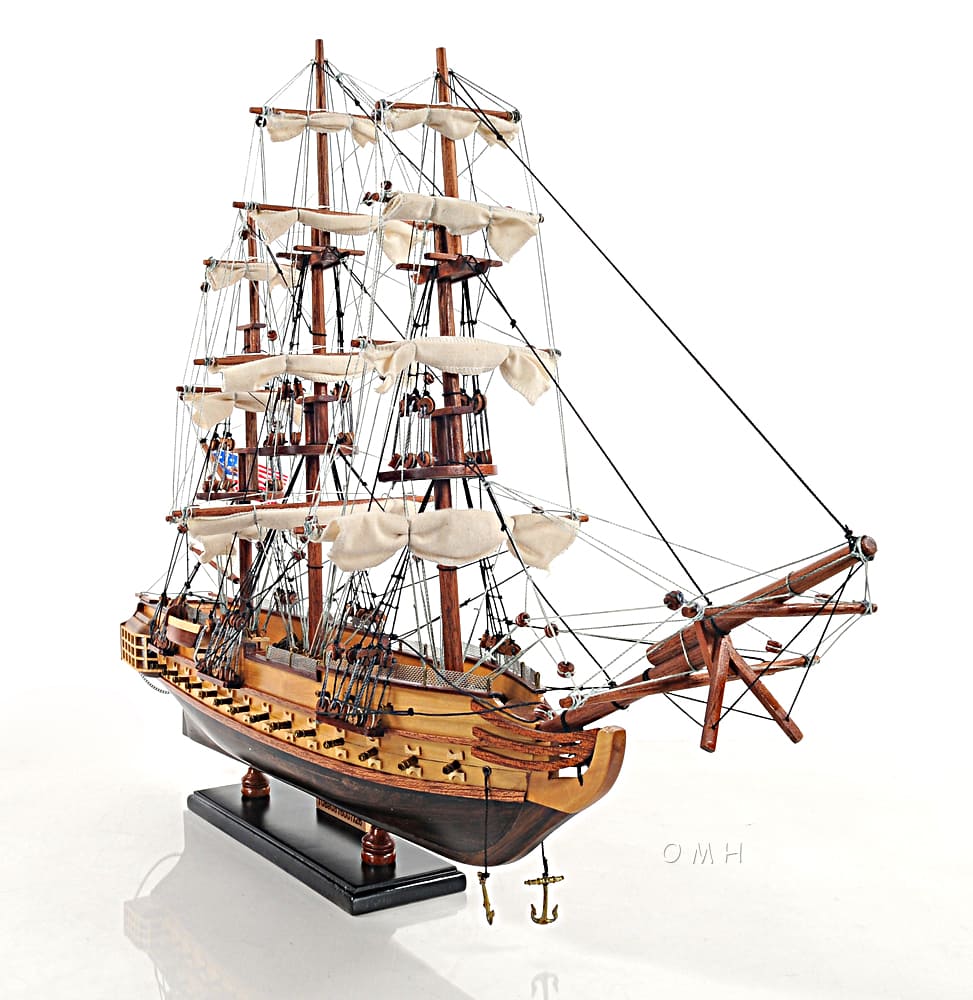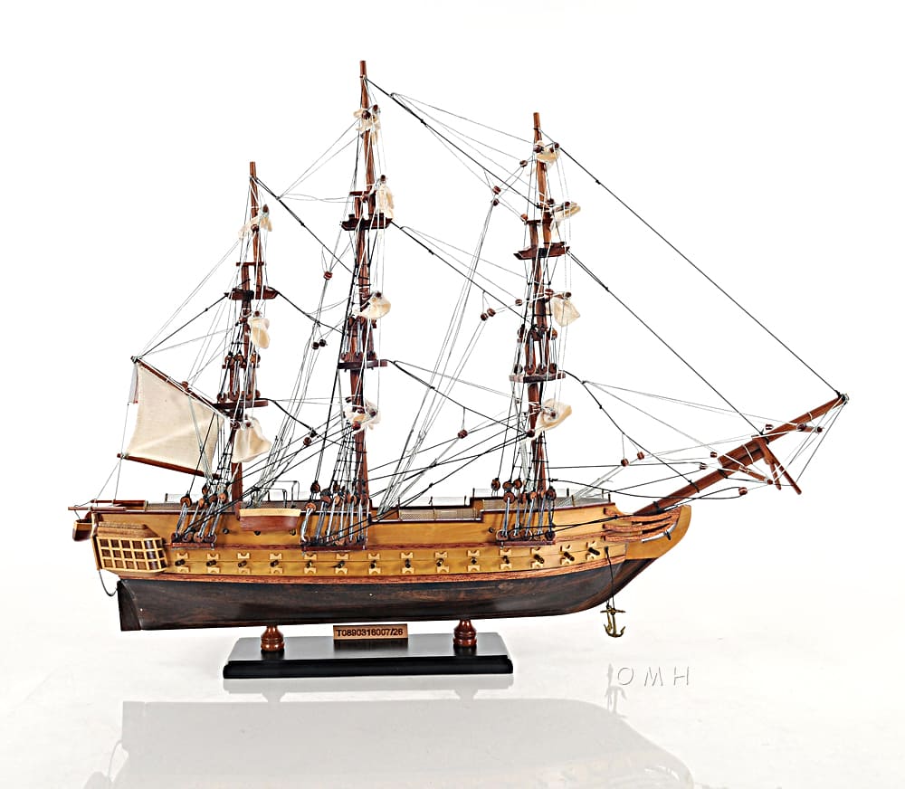 船上有一層清漆塗層,並帶驚人的細節。船身上令人驚嘆的細節包括木製的船首桅杆、前桅、主桅和後桅等。它們都連接著數條帆布帆,並有著細緻的縫製,所有的索具都是用相配色的手工細心固定。甲板上有一個小木製艙室,並帶有一艘小木船。在四分之一甲板上,還有一個木製艙室。在船頭甲板區域周圍有木製欄杆,朝向四分之一甲板區域。您可以在船身兩側輕易地發現許多金屬炮,以及船的前後其他製作精緻的金屬部件。船上還有一個木製舵輪,以幫助船艦正確地操縱。