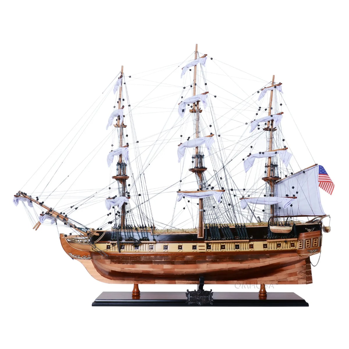 這艘令人驚嘆的 USS 憲法模型特點除木框架施工法外,雙層甲板和船兩側一整排兇猛的金屬大砲以及四層高的帆亦是主要特色。